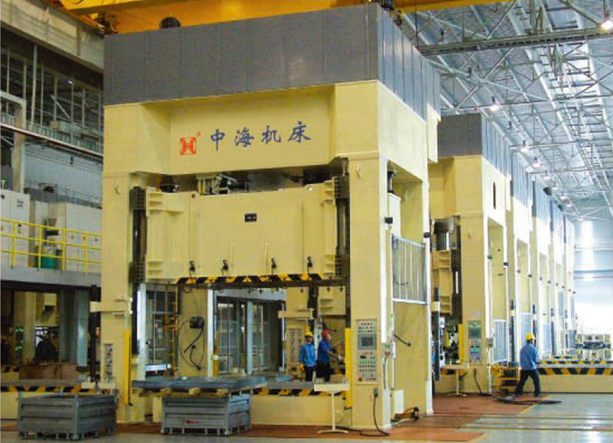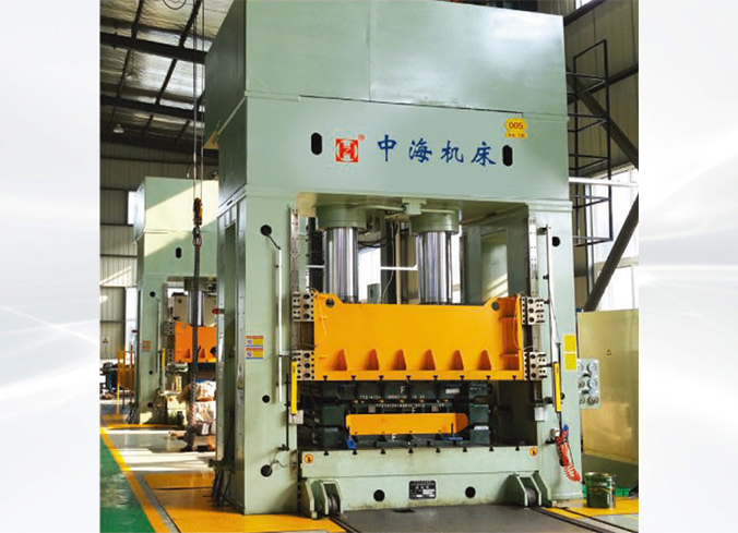 機床有單機和雙機聯動兩種形式。機身采用多柱式結構,立柱表面經中頻淬火處理,強度好、硬度高耐磨抗拉傷?;瑝K行程采用進口位移傳感器檢測發訊,閉環控制,電液比例泵執行,油缸同步效果好,滑塊抗偏載能力較強。